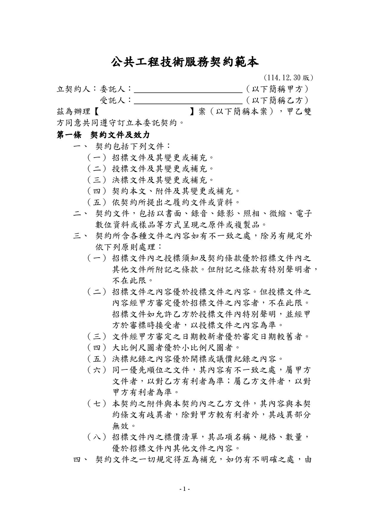 公共工程技術服務契約範本(1141230)