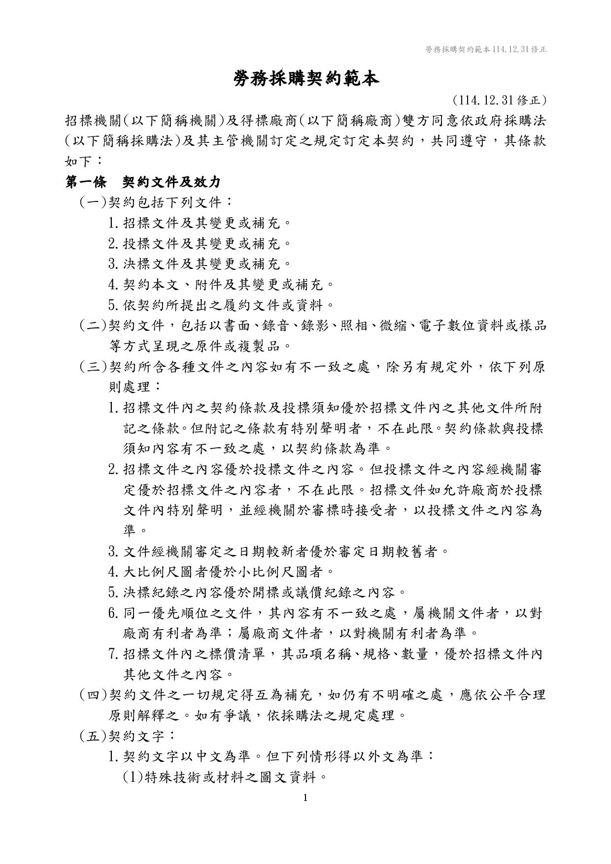 勞務採購契約範本(1141231)