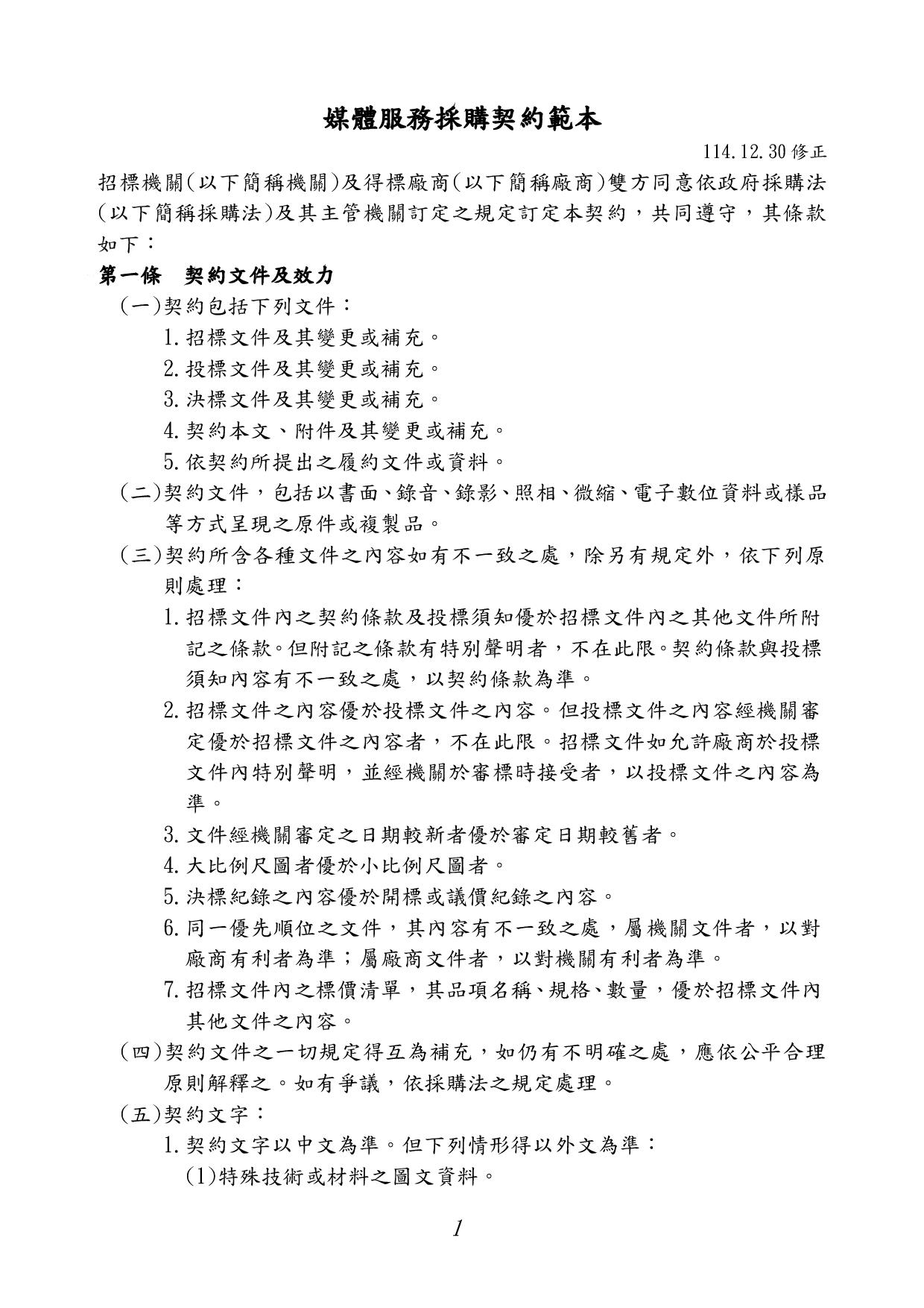 媒體服務採購契約範本(1141230)
