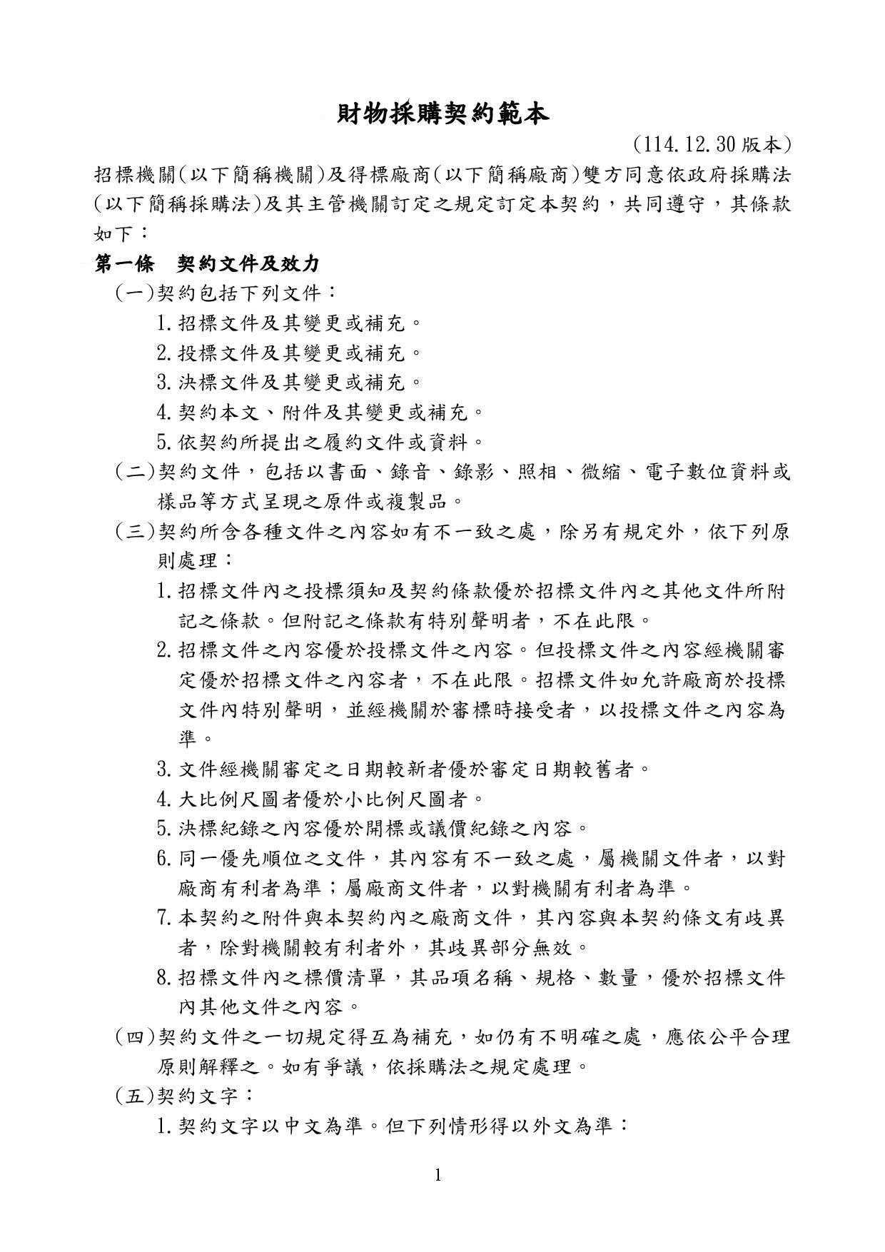 財物採購契約範本(1141230)
